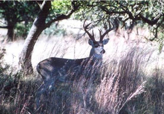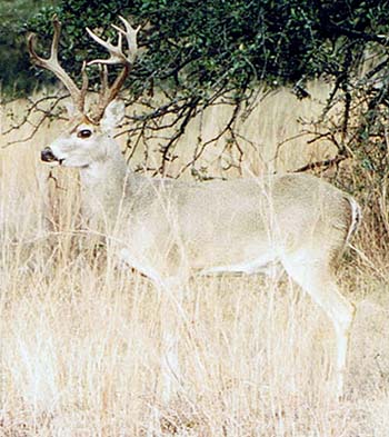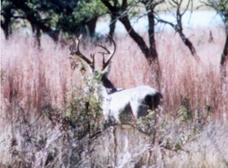 I’ve had the privilege of following the growth of this buck through the years since he was a yearling in 1999 and have named him Honcho. As a yearling Honcho had a small 8 point frame with a small sticker point near his base. As a two year old he had the same 8 point frame with 2 small sticker points near his bases. He kept this same antler pattern over the next 3 years growing larger overall.